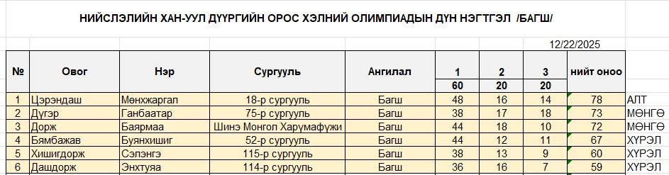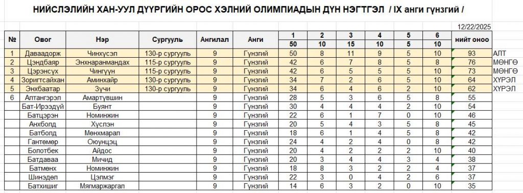 ОЛИМПИАДЫН ДҮН ГАРЛАА