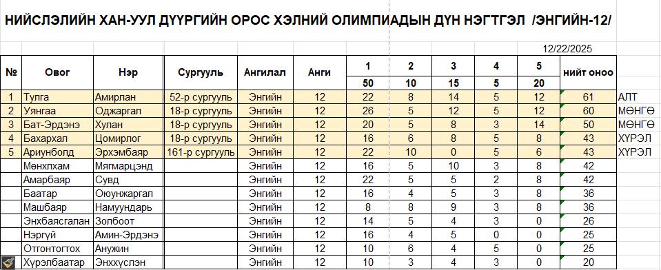 📌Олимпиад IX, XII ангийн энгийн, гүнзгий, багш гэсэн ангиллаар явагдаж, амжилттай өндөрлөлөө.